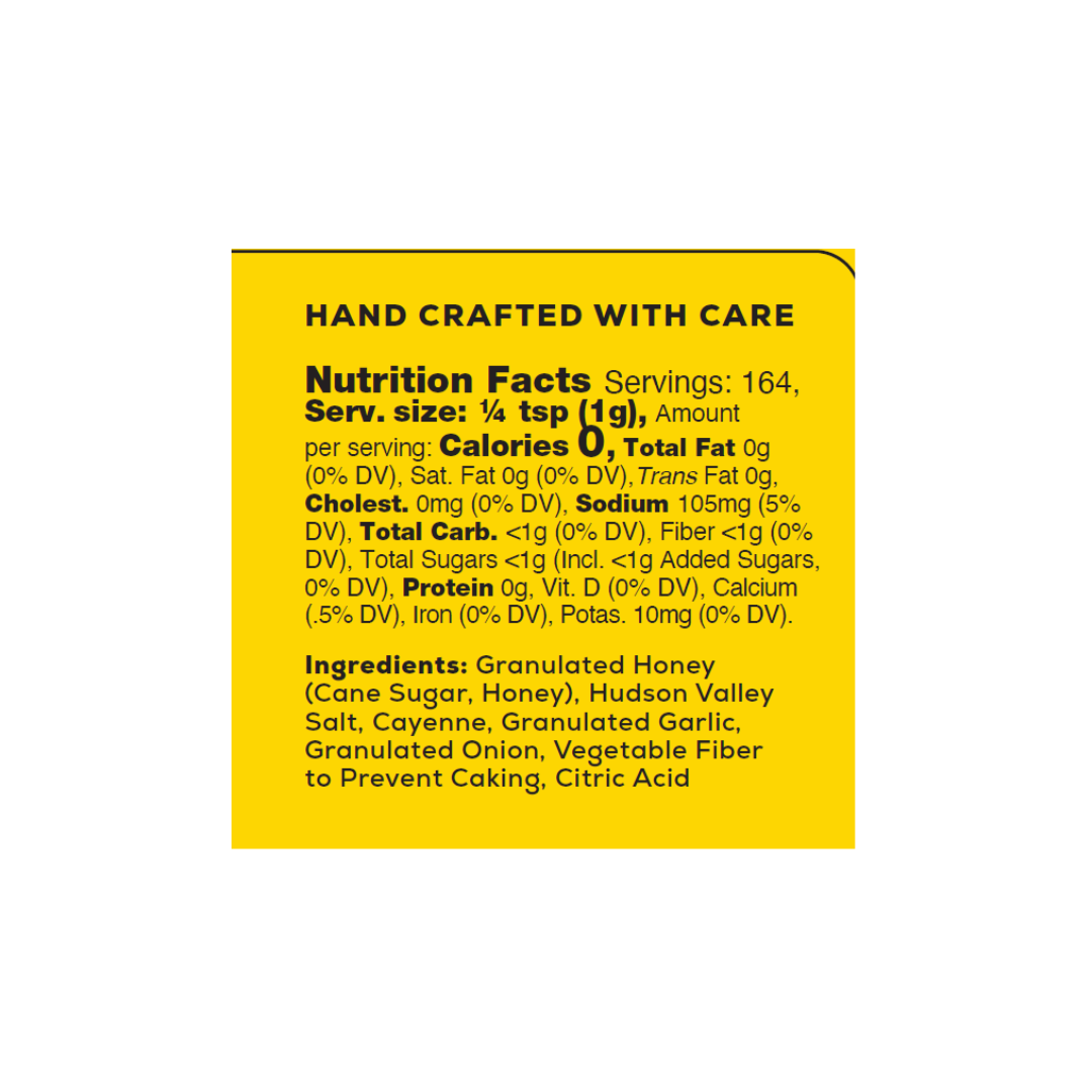 Enjoy the bold flavor of hot honey seasoning in a convenient dry seasoning shaker. This sweet heat blend delivers honey-style sweetness and warm chili spice without sticky sauces or drips—just clean, balanced flavor in every shake.